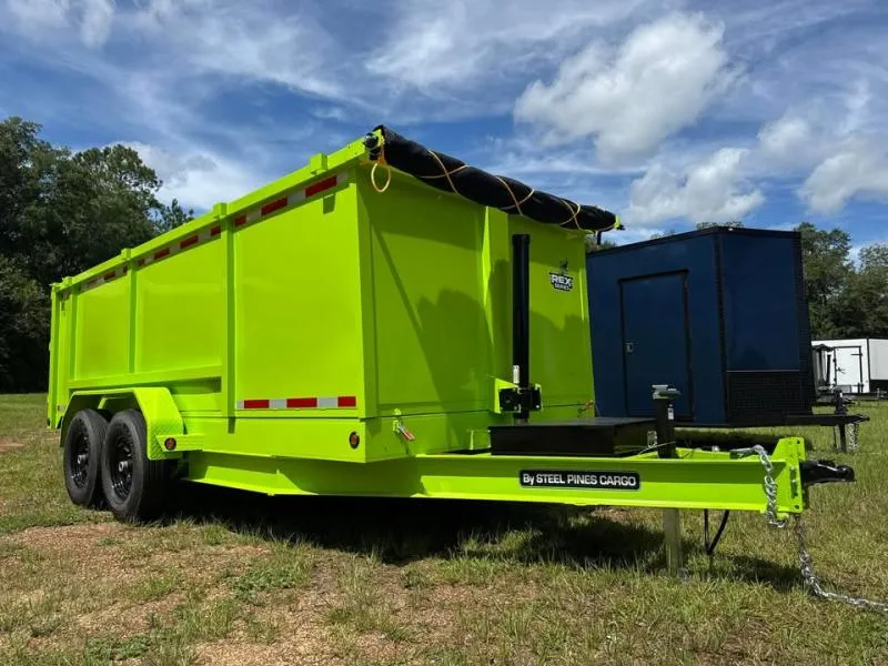 2026 STEEL PINES CARGO 7X16TA5 SLIME GREEN DUMP TRAILER UNDERSTORAGE RAMPS