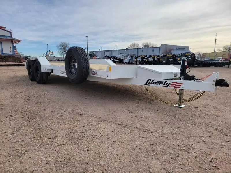 AMERICAN MADE COMMERCIAL GRADE LIBERTY LC7K83X18 CAR HAULER, STAR SPANGLED WHITE, 83"W X 20'L (18' DECK + 2' DOVETAIL), 57"...
