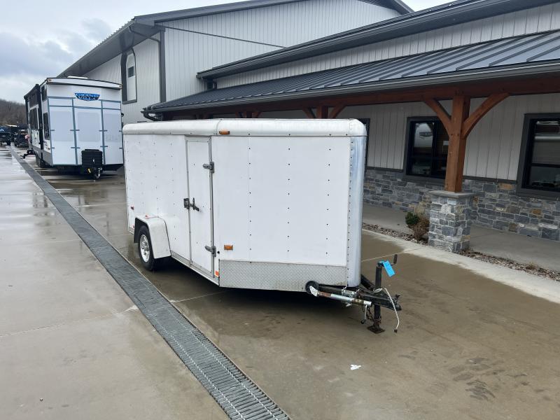 USED Classic 7x12 Single Axle Enclosed Cargo Trailer 2990# GVW * RAMP DOOR * V-NOSE * ROUND TOP * VINYL WALLS * ALUMINUM WHEELS * WHEEL CHOCKS